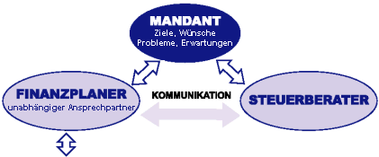 Der Finanzplaner managed die Koordiantion/Vermittlung zwischen